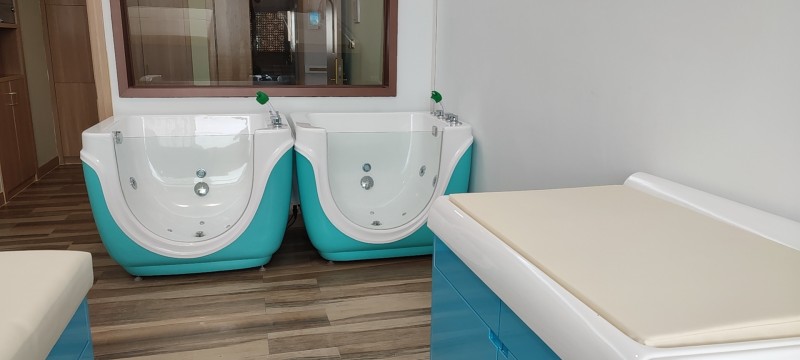 婴儿洗浴不仅可以促进新陈代谢,保护皮肤的清洁和健康,同时可以使婴儿舒展全身。洗澡的过程是一个运动消耗的过程,提高了幼儿的食欲,有助于消化能力的逐渐完善。婴儿游泳是一项新型的护理,其原理是让婴儿在类似母体的羊水中做自主运动,利用水波轻柔的爱抚,促进新生儿的智力发育和健康成长。