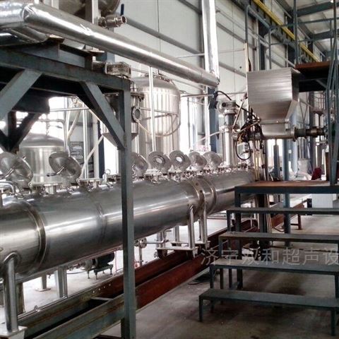 连续逆流超声波提取设备的主体设备为管道式(超声)提取设备,是由进料器、提取管段、排渣管、排液装置等组成;其配套系统为: