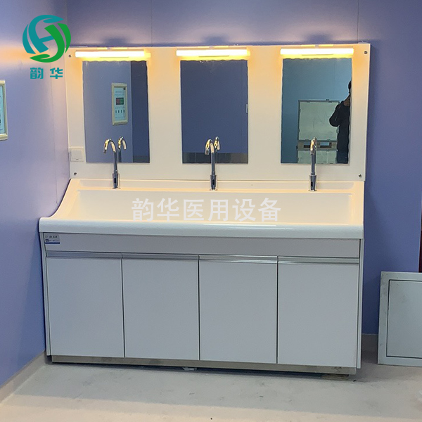 室、手术室。洗手池采用PMMA高分子材料一次冲压成型,表面平滑光泽,无缝角耐酸碱,易清洁,出水方式有感应龙头、脚踏板、膝碰式,无需动手,非接触式,满足医疗单位的需求还可以选配烘手器、热水器、自动给皂器