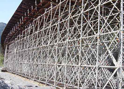 2. 轮扣式脚手架无任何专用紧锁零件,拥有较强的自锁能力,无需人工连接锁紧,连接和拆卸速度也大大超过传统的钢管脚手架。