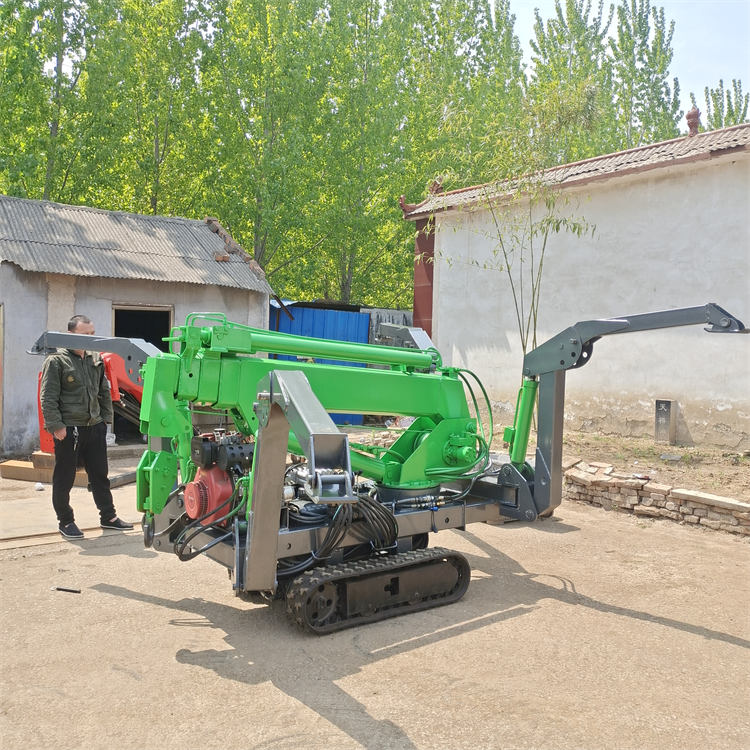 蜘蛛吊体积小,可折叠 履带蜘蛛吊车简称蜘蛛吊车, 5吨高效微型履带吊机 电启动节能方便遥控式行走。微型蜘蛛吊车,底盘采用橡胶履带底盘,对室内及硬化地面无任何损伤,特有的履带底盘可原地转向360度,大大降低了整车占用空间。吊臂可连续360°旋转,斜趴折叠支腿,使吊车稳定安全高效灵活,体积小节能更方便