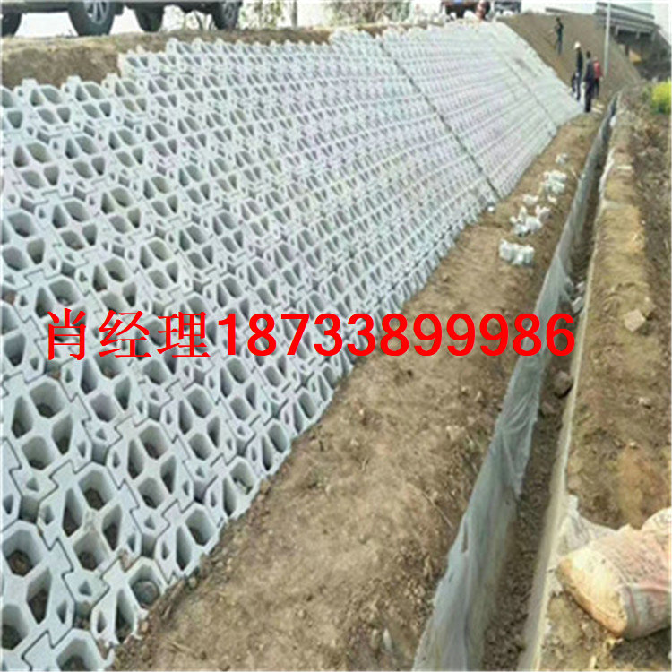 连锁式植生快的介绍:连锁式护坡是一种新技术,连锁式切块是用预制的混凝土组合而成的,每块护砖形成连锁形态,护砖之间的连锁式具有超强特性,在抗水冲刷的问题上,这种护砖整体为稳固,有较强的耐冲性,超强连锁式块的预制混凝土强烈要求较高,铺面护砖的要求规格尺寸一致,砖砖相接呈现矩形样式,护砖之间有孔眼,可以种着花草,起到环境美化作用。