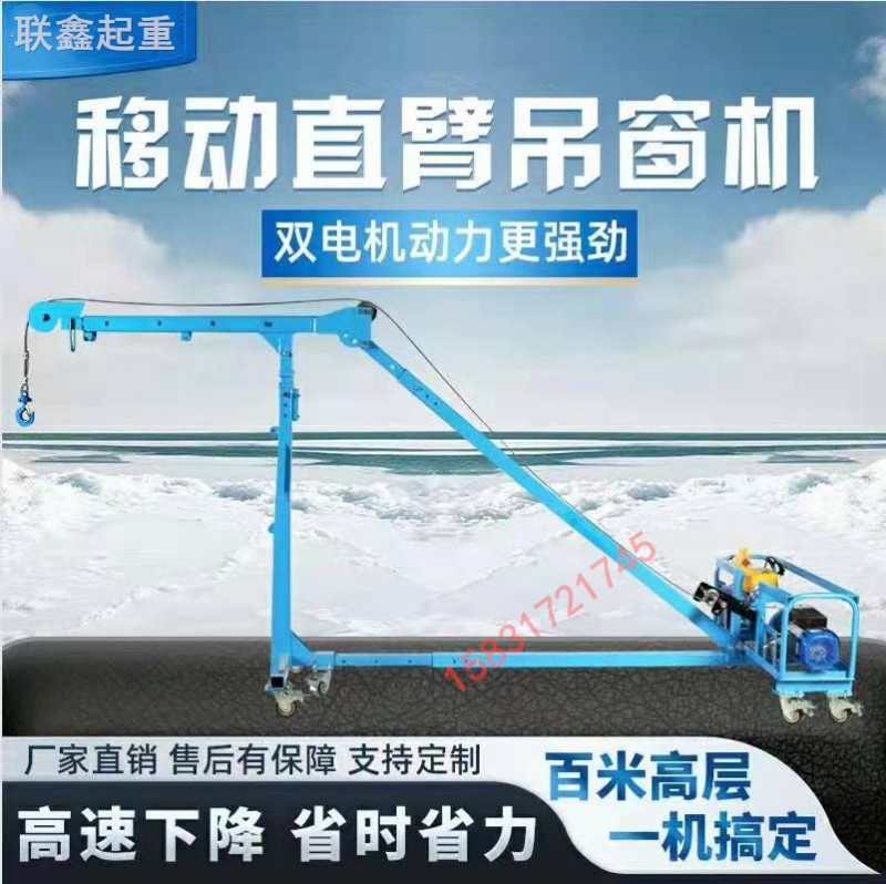 双电机吊窗机小型吊运机安装立杆方便简单,立杆根据实际现场来调节长度,使用再次方便,双电机吊窗机功率为:3.0KW、4.0KW功率大,高层吊门窗、吊玻璃使用才会强劲离合器吊窗机型号分为:300型、400型,钢丝绳长度为:90米与120米,可根据现场情况加长定制钢丝绳长度,联鑫起重简易不要使用过长钢丝绳,这样会减少吊运物品重量,存在很大的危险。离合器吊窗机设计理念为:在高空作业中,减少缓慢下放钢丝绳作用,离合器作用下放钢丝绳更加快捷