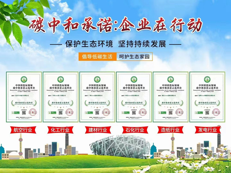 为响应政策,履行承诺,发挥示范作用,目前中国招标投标网开始征集碳中和承诺示范单位,对实施企业进行自愿碳排放等相关承诺,并在中国招标投标网展示,证书可作为国家承诺2060年达成碳中和目标首批企业碳中和承诺示范单位参与投标加分。