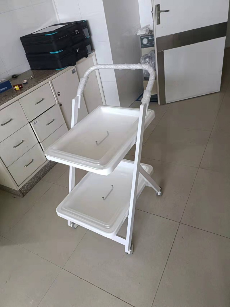 内镜转运车其周转箱材料亦由制造清洗槽台面的高分子复合材料独立开模制成,车体由不锈钢喷塑而成,具有耐腐蚀、不沾水、车行顺畅、取放方便等优点。盆内内镜存放导航隔条使污染部位和非污染部位分离。多层设计使客户在使用过程中可将清洁和污染的内镜分层标明后置放,避免交叉感染等功能