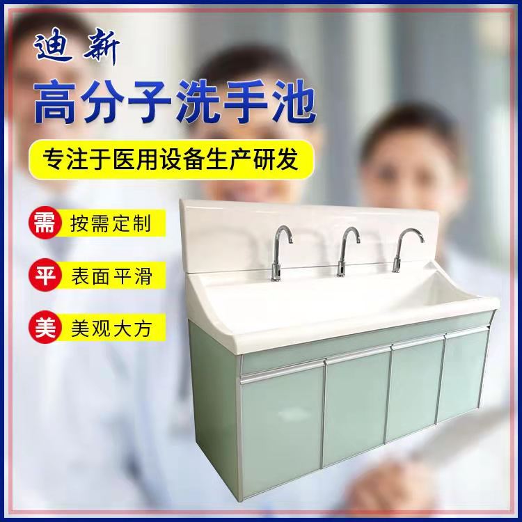 高分子洗手池材质特点:采用高分子材料一次吸塑成型,出水方式有:感应式、膝控式、脚踏式和手动开关,一台洗手池可客户要求选择单一出水方式或多种出水方式。洗手池分高背和低背,高背总高度1800mm,配有美容镜,照明灯,皂液器,可按客户要求配置烘手器和热水器。低背板无配置。